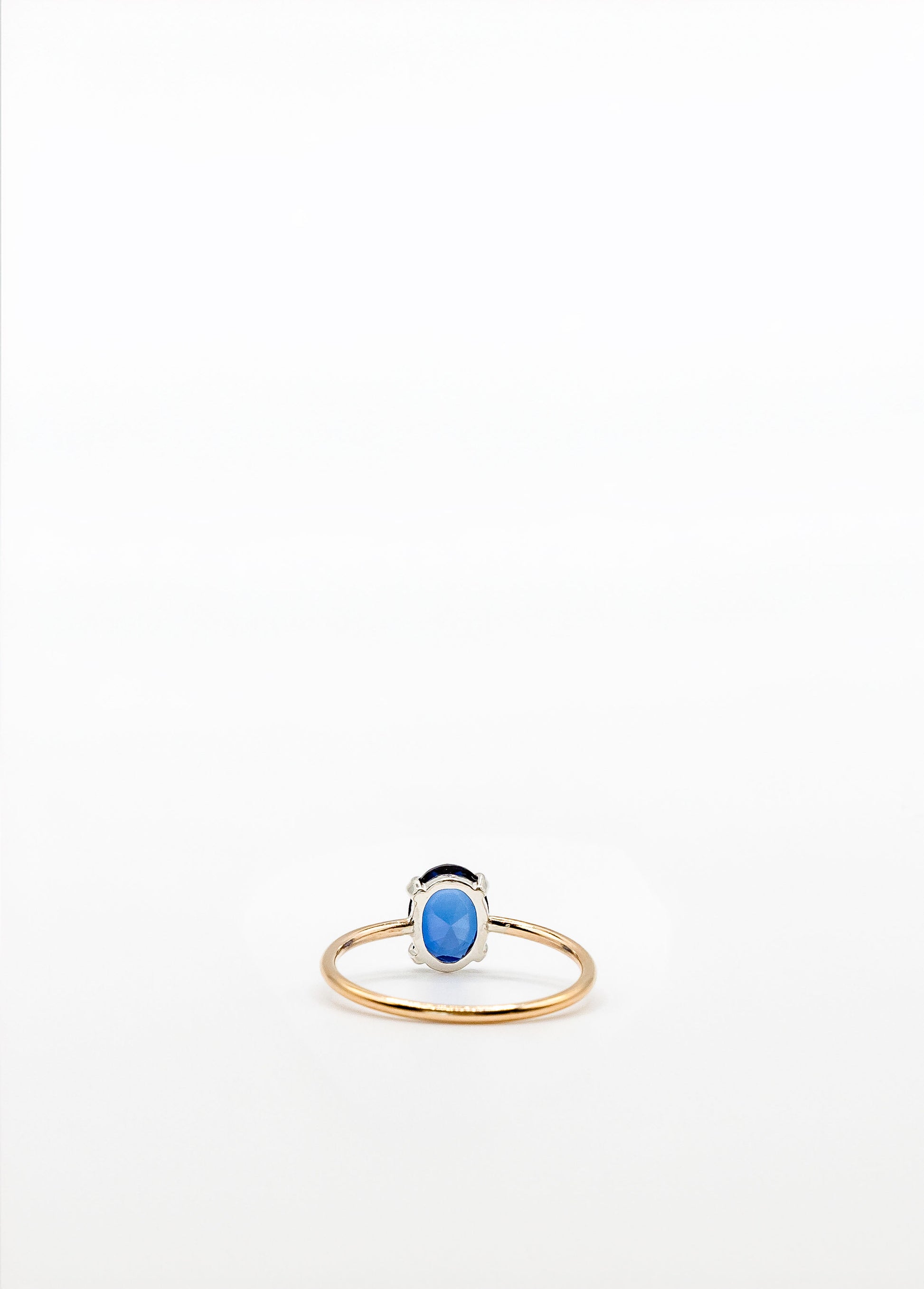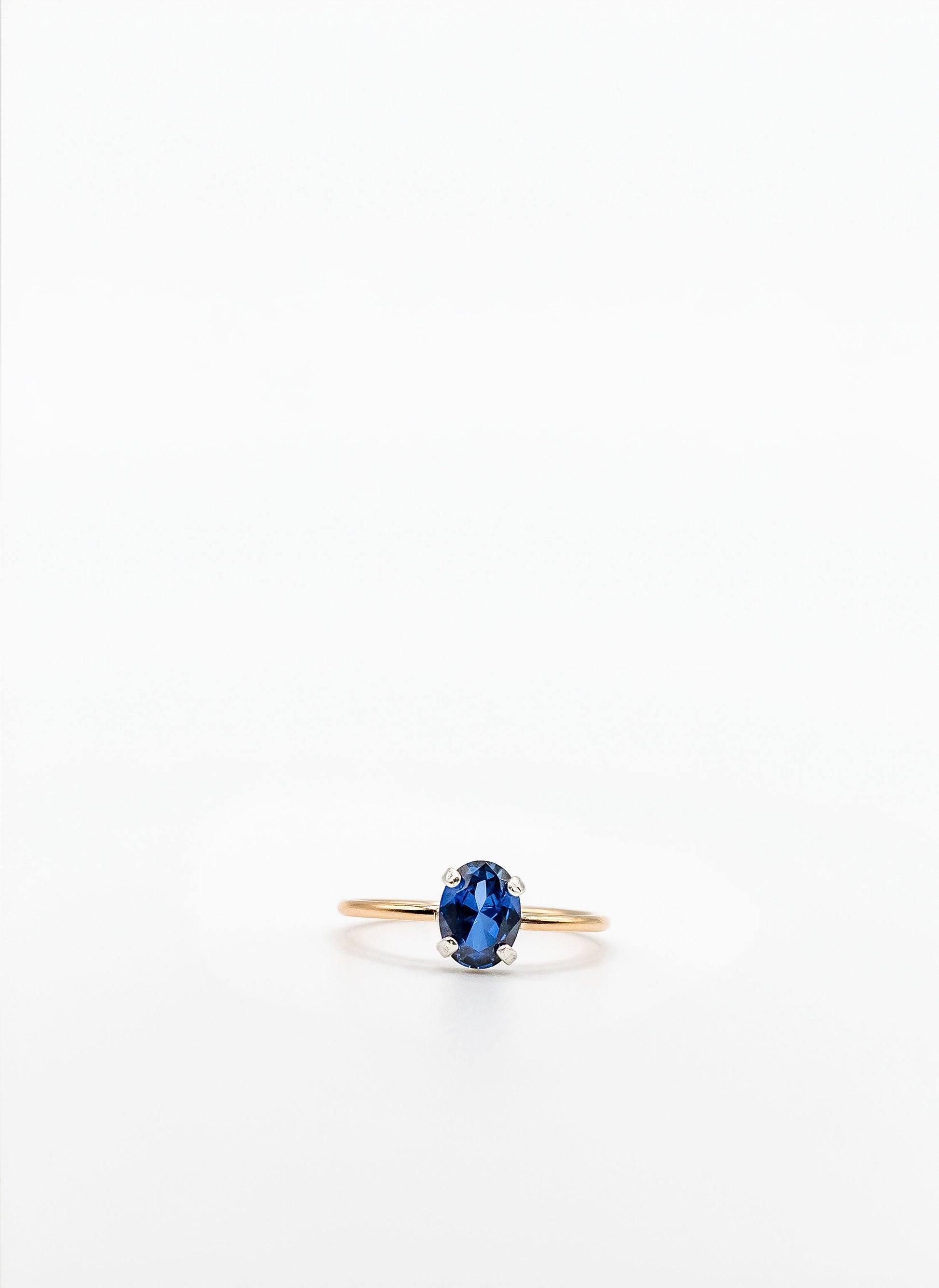 A gorgeous solitaire ring with a sophisticated oval blue lab-grown sapphire that's both beautiful and charming.