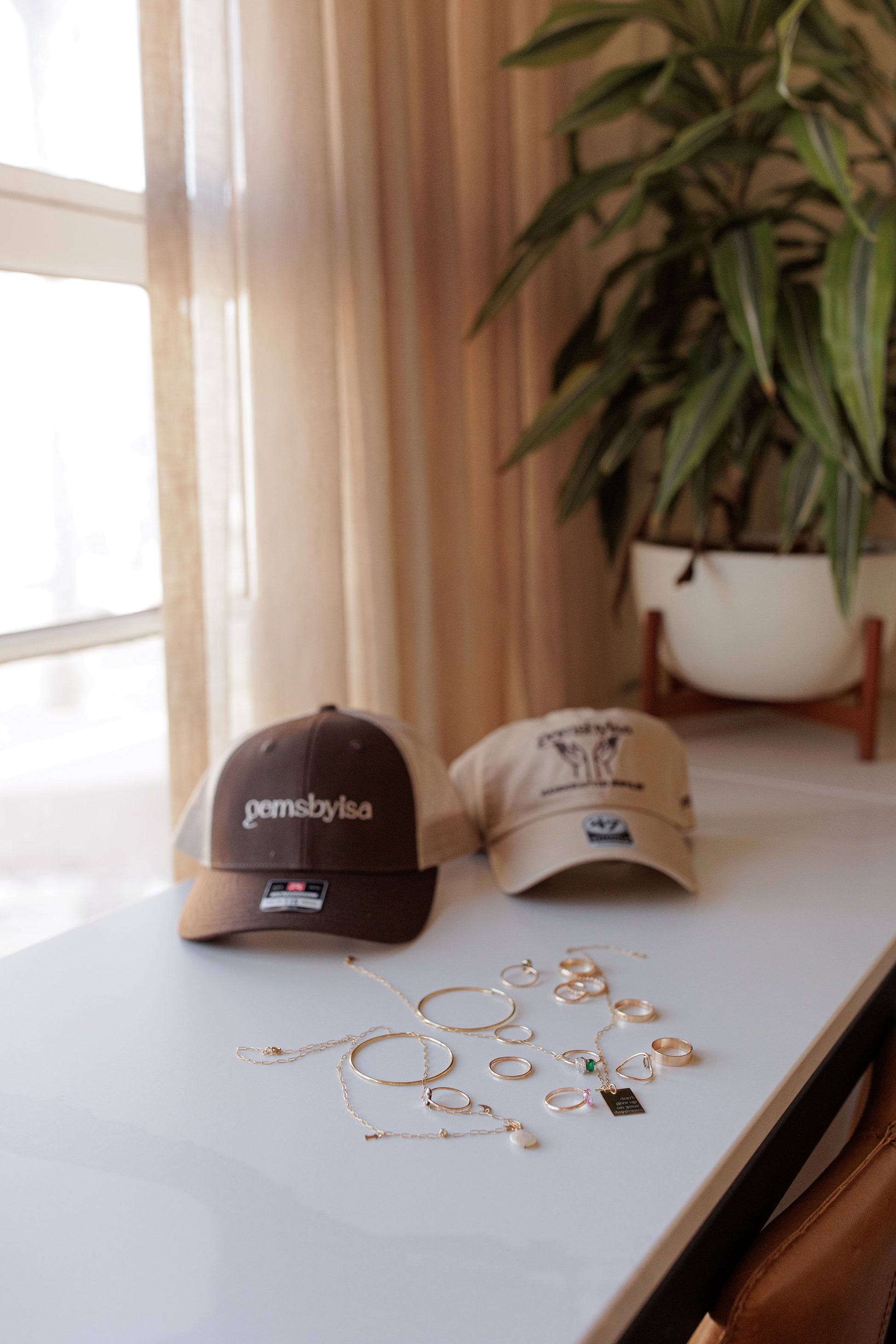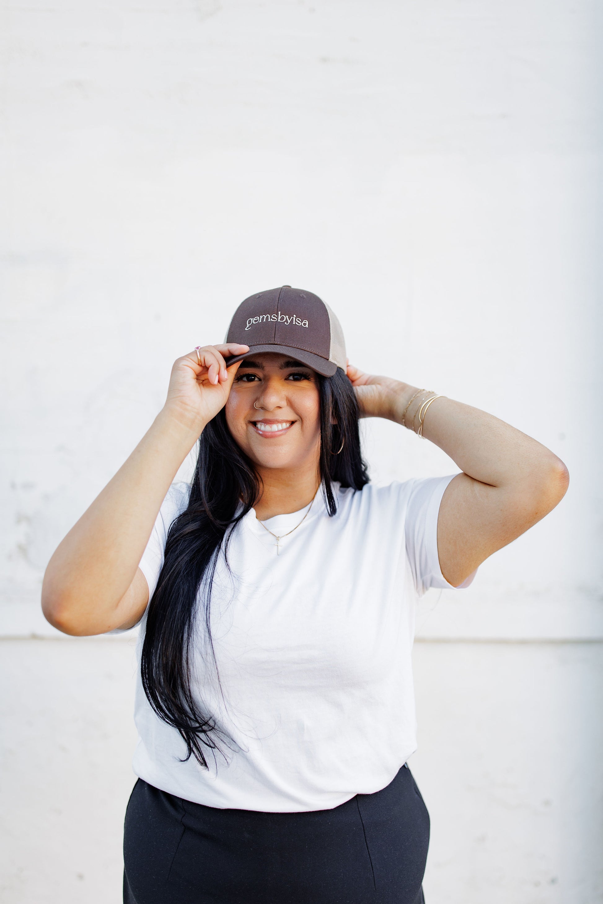 Introducing our GEMSBYISA hat! Designed with our signature everyday wear goal in mind, this versatile hat can elevate any outfit. Dress it up or down, it's perfect for any occasion. Join the excitement and grab one today!
