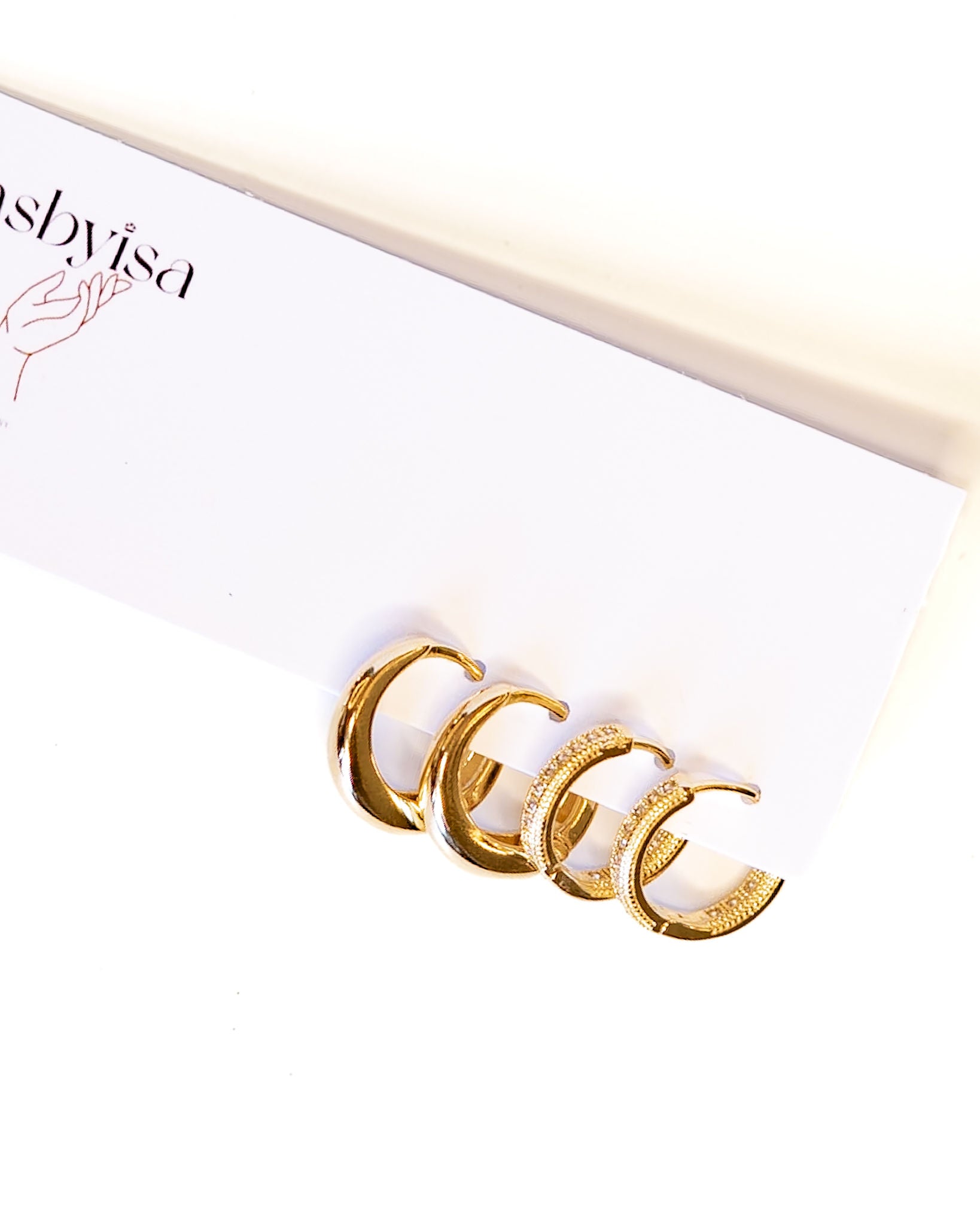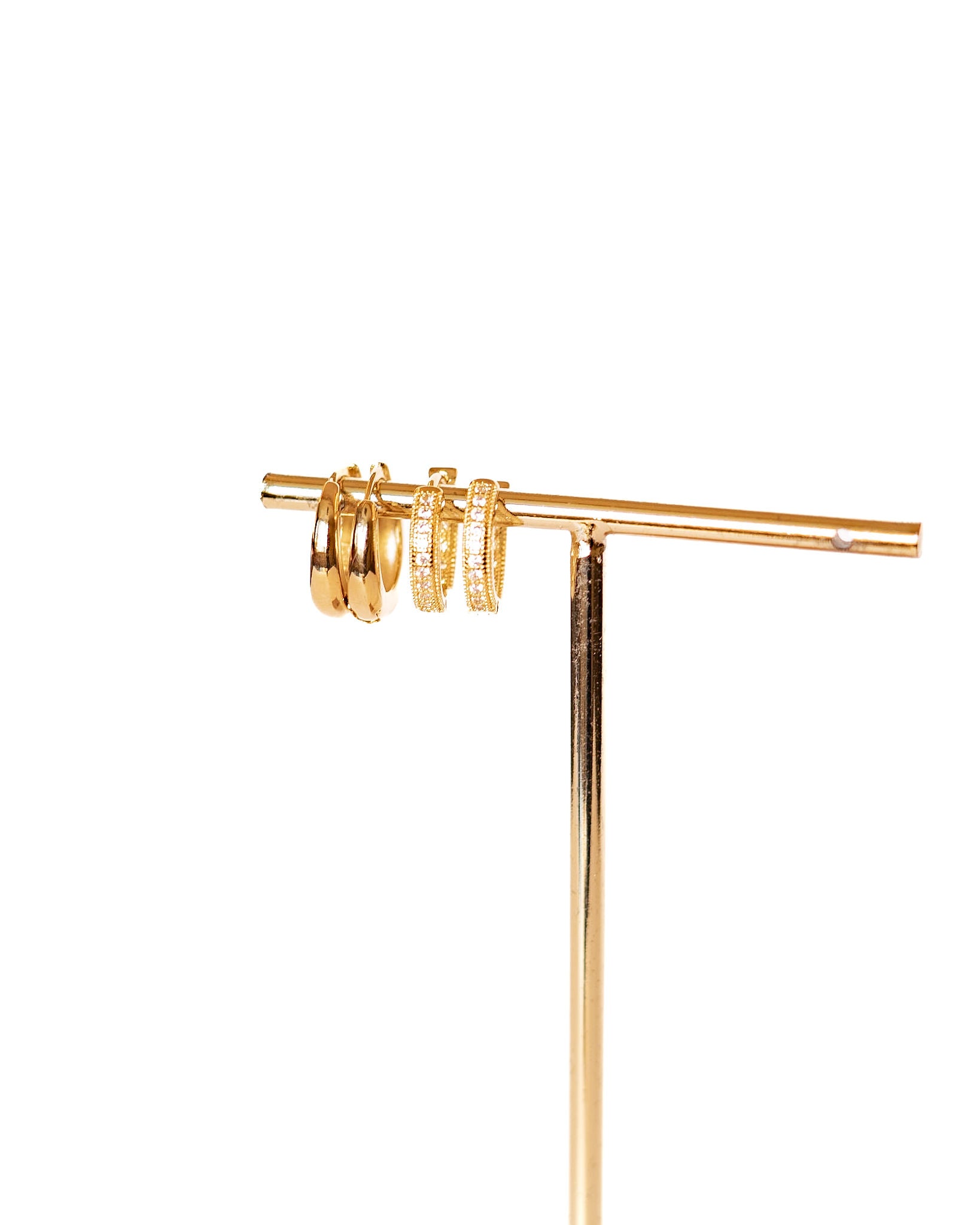 Glen Stack is your go-to combo for iconic style and sparkle. Pair the timeless classic clicker hoops of Lenny with the dazzling charm of Gwen earrings for a playful stack that’s perfect for brightening up any outfit with fun and flair!