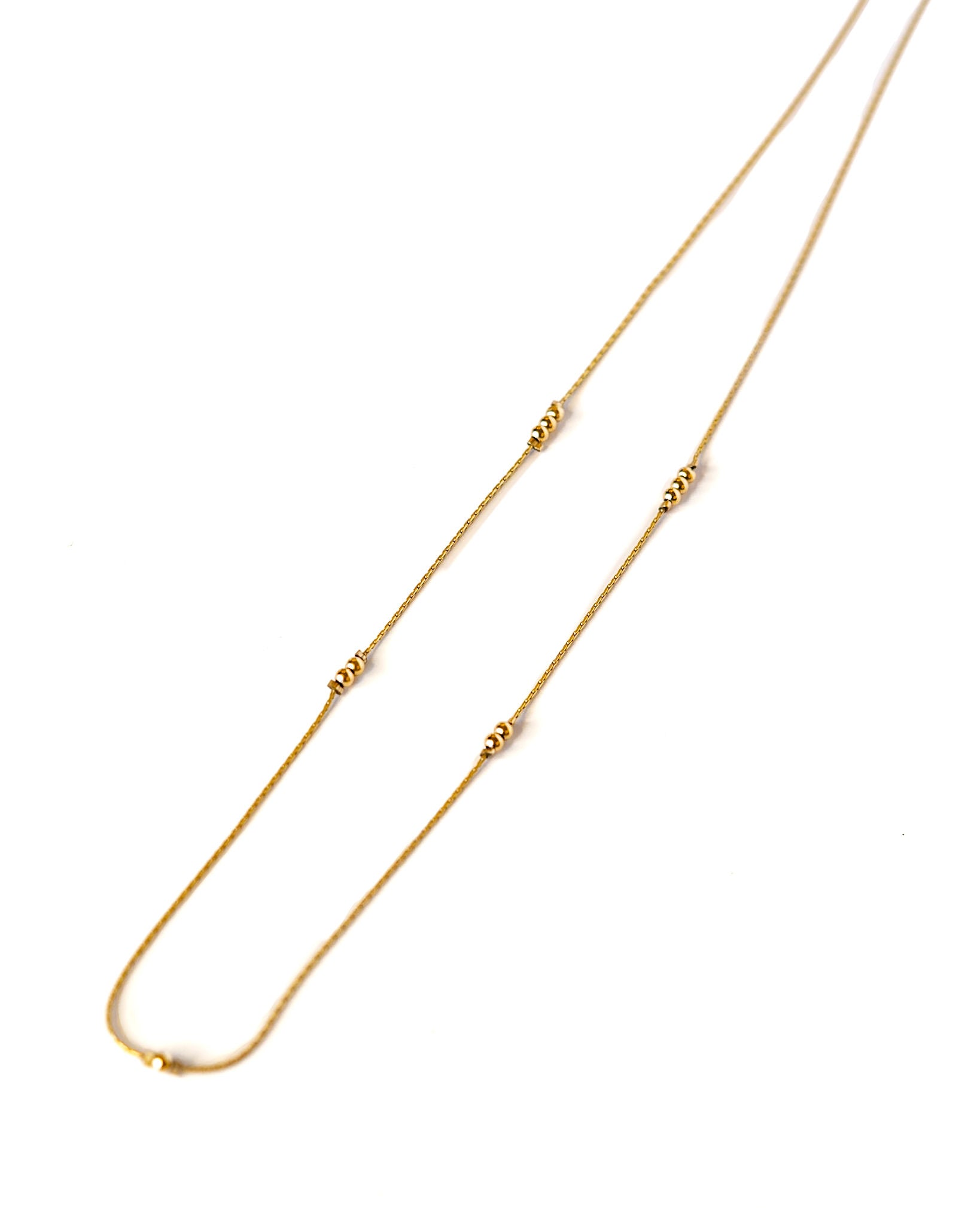 The Goldie Necklace is a playful blend of dainty elegance and cool style. Featuring a delicate gold-filled chain with a unique bead pattern, it adds a subtle sparkle and fun detail to any outfit. Lightweight and charming, it’s a perfect everyday accessory to brighten your look.