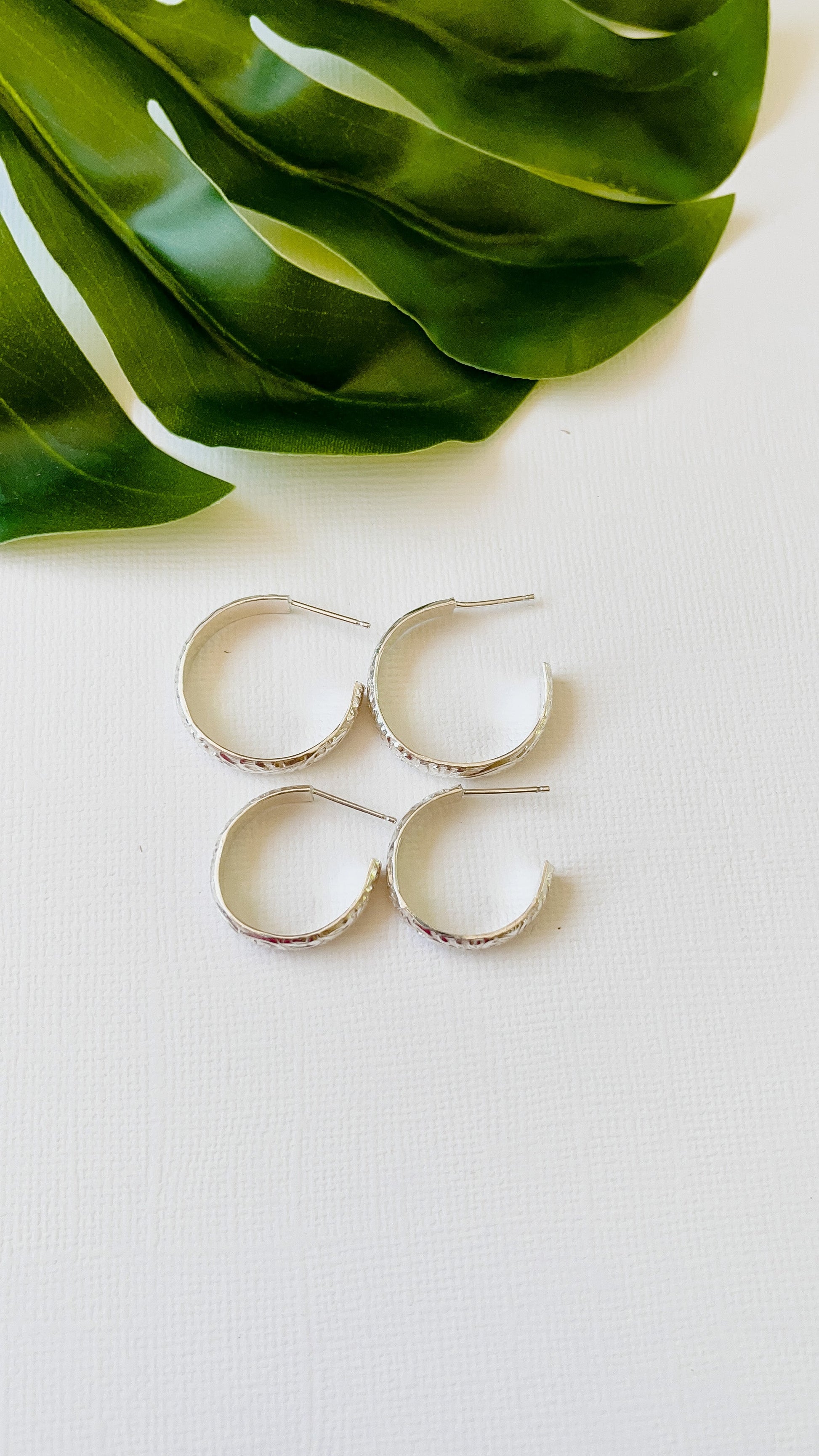 Silver Floral band earrings (smaller)