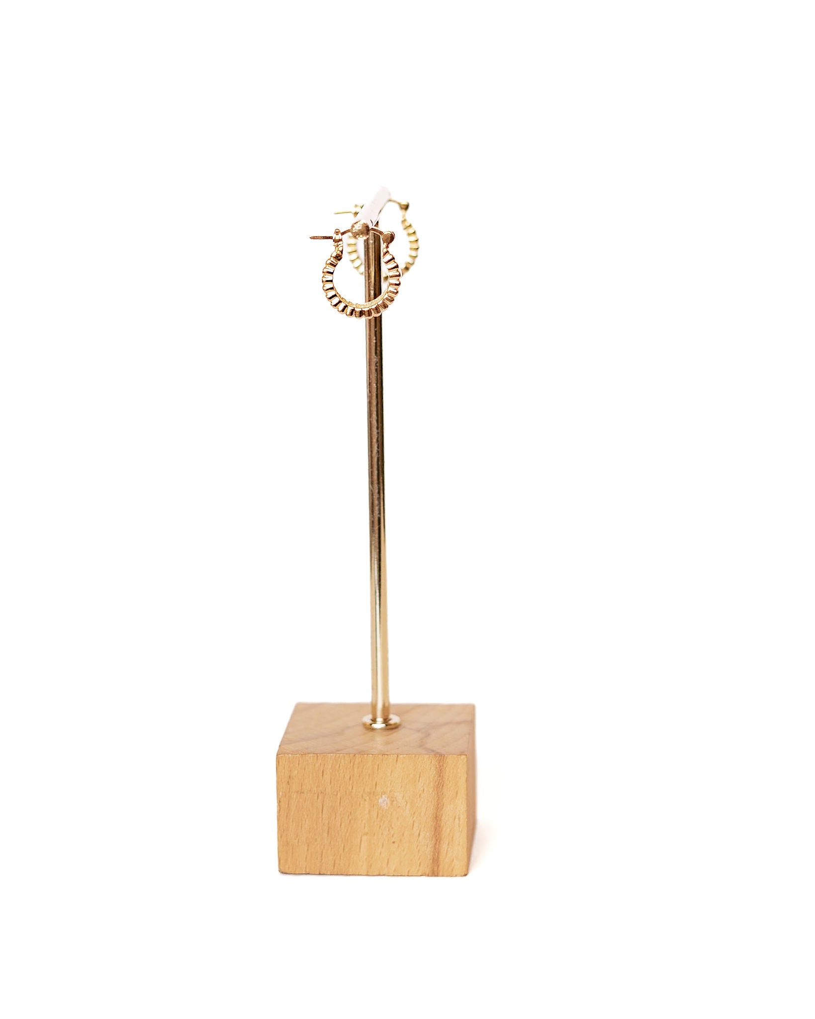 Yessi hoops add a playful twist with their ridged texture, giving classic hoops a fun, new edge. Light and stylish, these earrings effortlessly brighten your look with a touch of subtle sparkle and unique detail. Perfect for turning heads anytime!